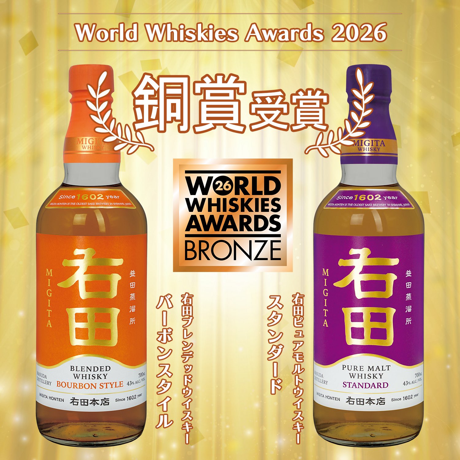 イギリスで開催されたWWA2026にて、【右田ブレンデッドウイスキー バーボンスタイル】【右田ピュアモルトウイスキー スタンダード】の2点がブロンズを受賞しました!